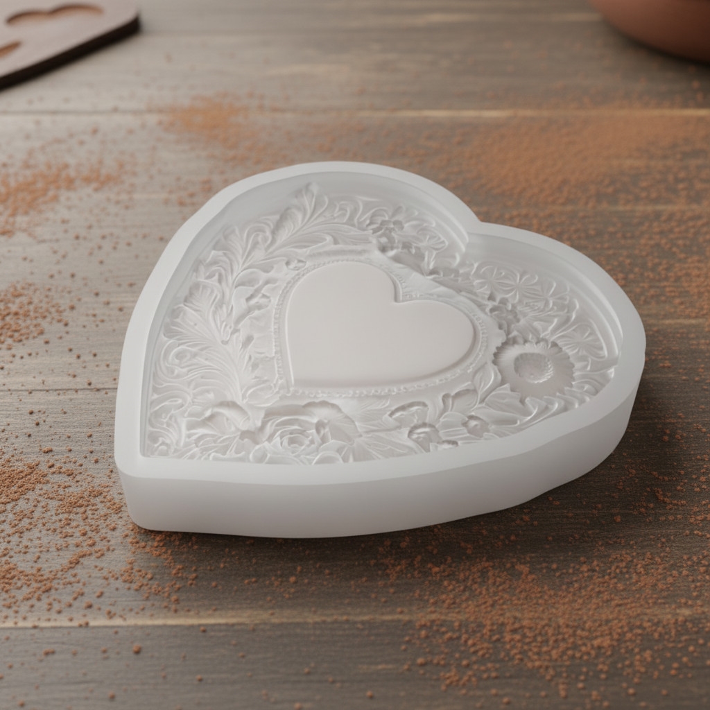 Эта силиконовая форма выполнена в виде сердца, украшенного изящными цветочными узорами. Изготовлена из высококачественного, гибкого и прочного пищевого силикона. Подходит для эпоксидной смолы, мыла, свечей, шоколада, мастики, гипса, глины и других творческих работ. Форма отлично передает мелкие детали, легко очищается и многократно используется.