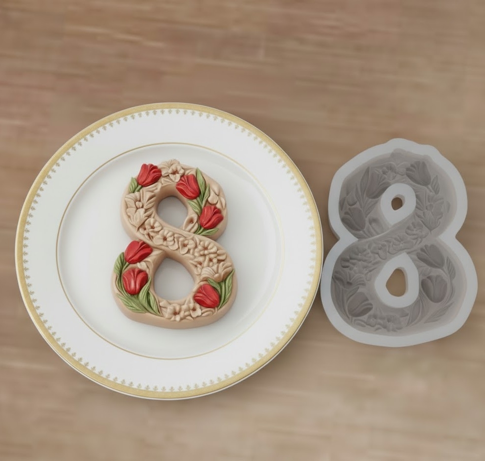 Силиконовая форма - 8 марта с тюльпанами